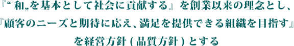 創業九十数年の長きに渡り、築き上げてきた信用と実績に対し、先駆者の努力に感謝し、心より敬意を表します。私は、この歴史と伝統を守り、改革と改善を行うと共に、我が社の理念である「“和„を基本として社会に貢献する」をより一層周知します。